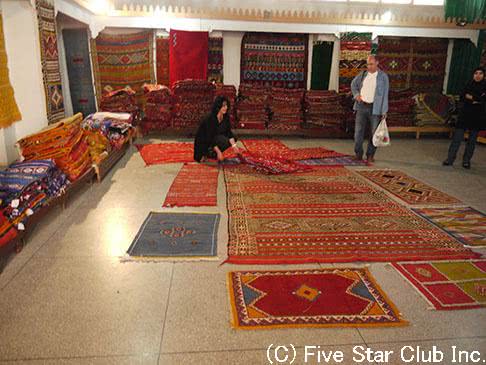 そこでお勧めしたいのが伝統工芸館。ここは職人さんたちが適正な価格で高品質なものを売っている。なんと、商品にちゃんと値札が付いている!そしてスークに並ぶものよりかなりイイ仕事をしている。またスークのようなしつこい勧誘もないのでじっくり時間をかけて選ぶことも出来るし、最高の場所だ。先にここで相場を確認しておけば、後にスークでぼったくられるというリスクが激減する。ベルベル絨毯がそれはもうかわいくて、値段も日本で買うのよりとても安いのだけど、先日別のものを買ってしまったばかりだったので、泣く泣く諦めた。よっぽど心残りが会ったのだろう、その後も見かける度に絨毯の写真ばかり撮っていた。後々になって分かるが、ここで売っている絨毯が一番安かったと思う。
